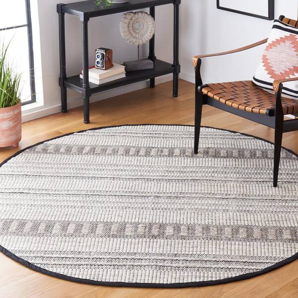 Natura Gray/Black 6 ft. x 6 ft. Abstract Striped Round Area Rug