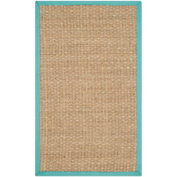 Natural Fiber 4 ft. x 6 ft. Natural/Teal Border Woven Area Rug