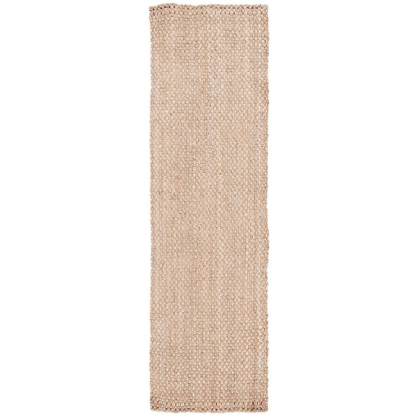 Natural Fiber Beige 2 ft. x 8 ft. Woven Border Runner Rug
