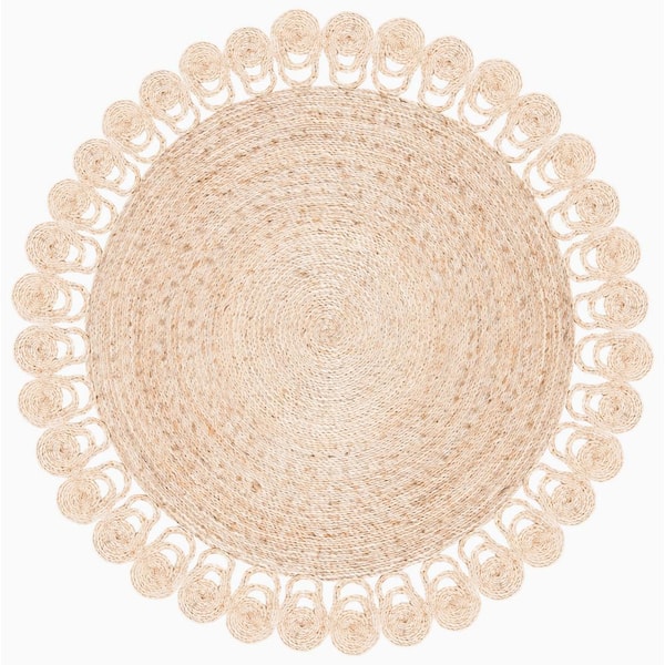Natural Fiber Beige 4 ft. x 4 ft. Woven Floral Round Area Rug
