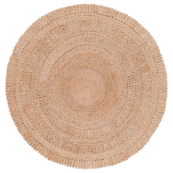 Natural Fiber Beige 4 ft. x 4 ft. Woven Solid Round Area Rug