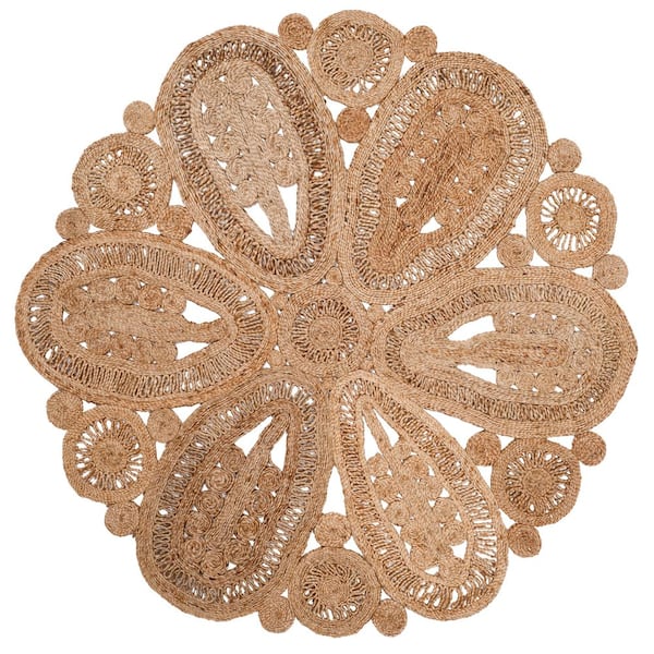 Natural Fiber Beige 8 ft. x 8 ft. Woven Floral Round Area Rug