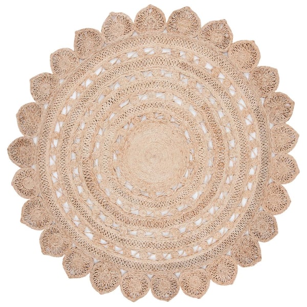 Natural Fiber Beige 9 ft. x 9 ft. Woven Floral Round Area Rug