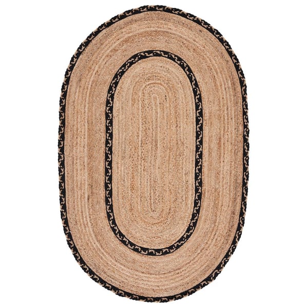 Natural Fiber Beige/Black 5 ft. x 8 ft. Border Woven Oval Area Rug