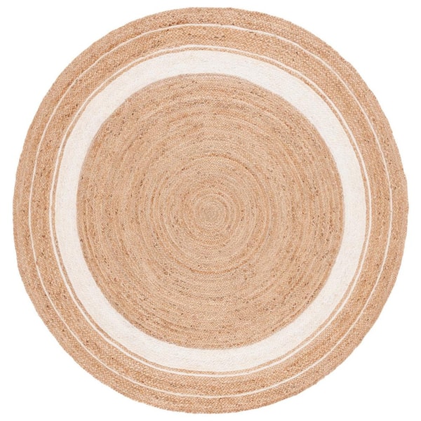 Natural Fiber Beige/Ivory Doormat 3 ft. x 3 ft. Woven Striped Round Area Rug