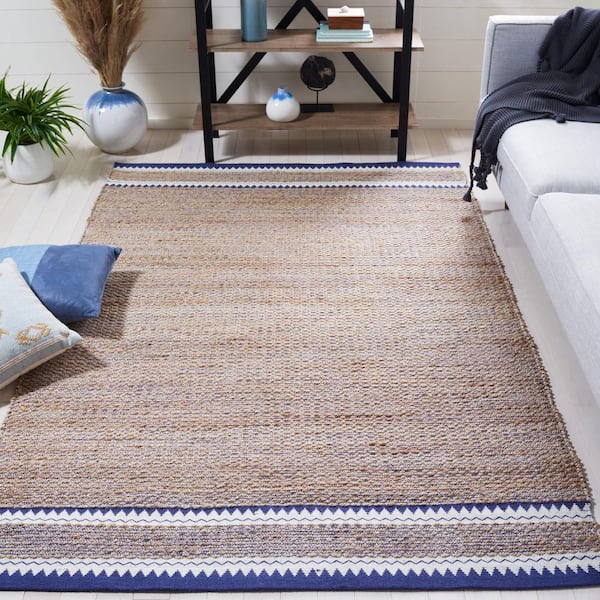 Natural Fiber Beige/Navy 6 ft. x 9 ft. Woven Border Area Rug