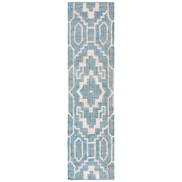 Natural Fiber Blue/Ivory 2 ft. x 9 ft. Modern Geometric Runner Rug