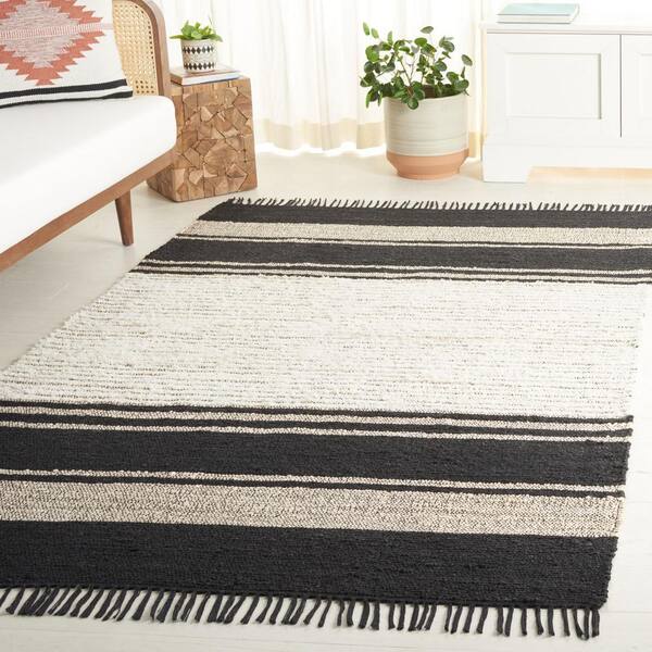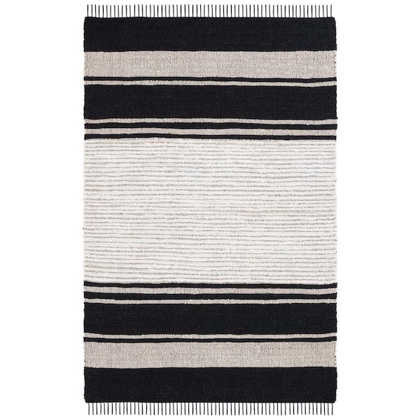 Natural Fiber Ivory/Black 6 ft. x 9 ft. Woven Striped Area Rug
