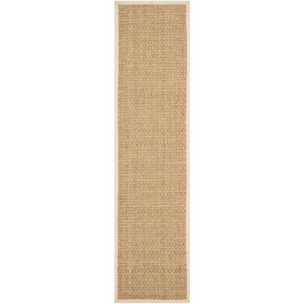 Natural Fiber Natural/Beige 3 ft. x 20 ft. Border Woven Runner Rug