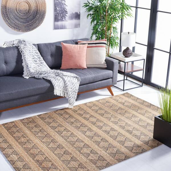 Natural Fiber Natural/Black 5 ft. x 8 ft. Abstract Striped Area Rug