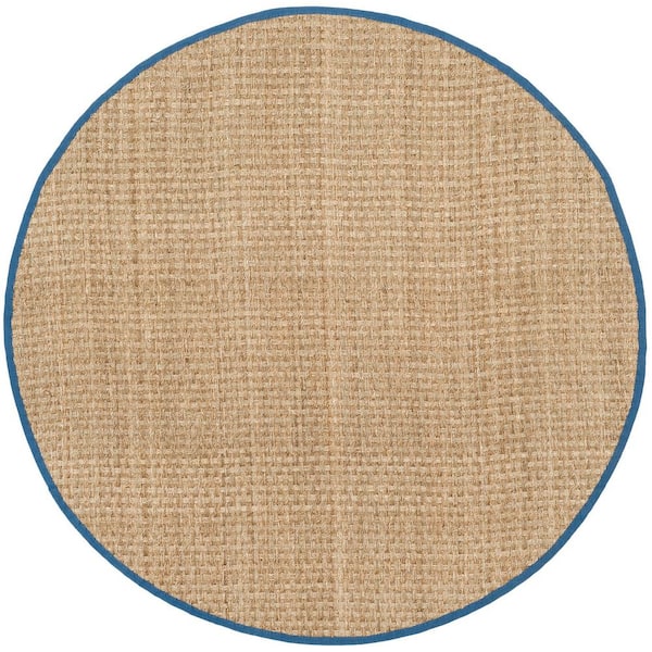 Natural Fiber Natural/Navy 6 ft. x 6 ft. Border Woven Round Area Rug