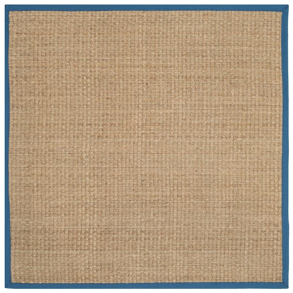 Natural Fiber Natural/Navy 6 ft. x 6 ft. Border Woven Square Area Rug