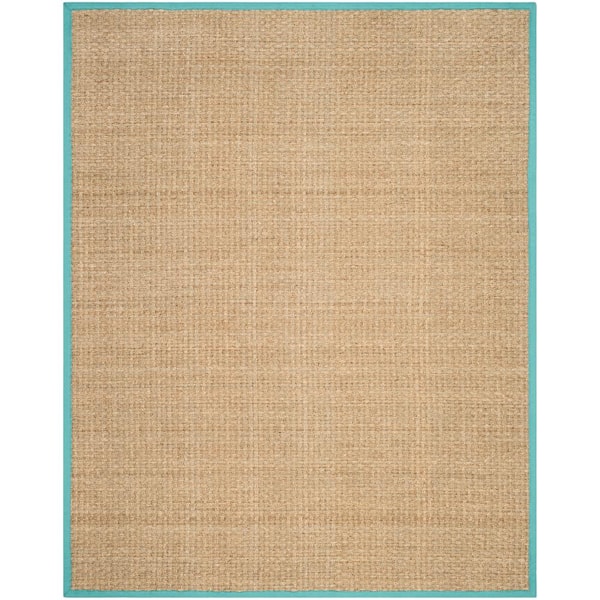 Natural Fiber Natural/Teal 9 ft. x 12 ft. Border Woven Area Rug