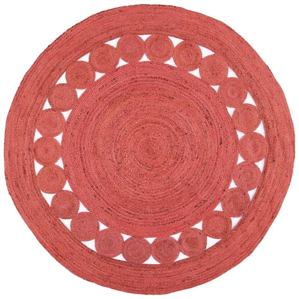 Natural Fiber Rust 4 ft. x 4 ft. Border Woven Round Area Rug