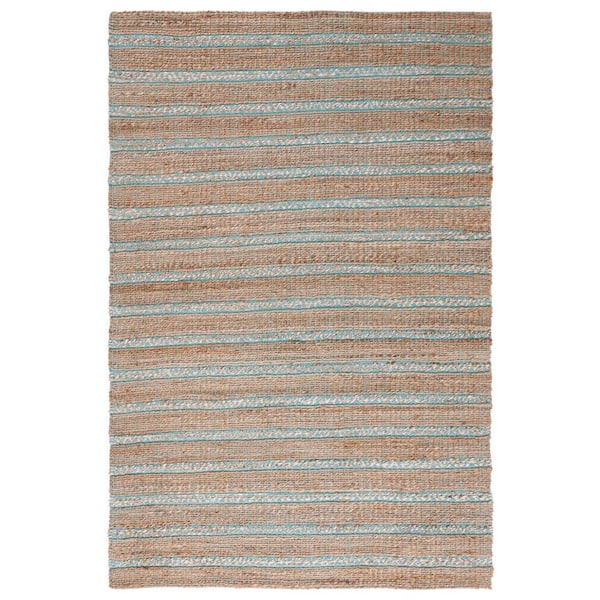 Natural Fiber Teal/Beige 5 ft. x 8 ft. Striped Woven Area Rug