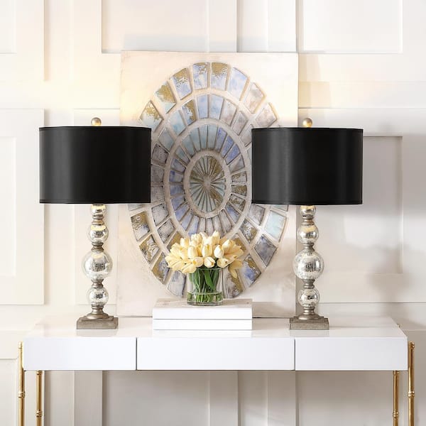 Nettie 28 in. Silver Mercury Glass Table Lamp with Black Shade (Set of 2)