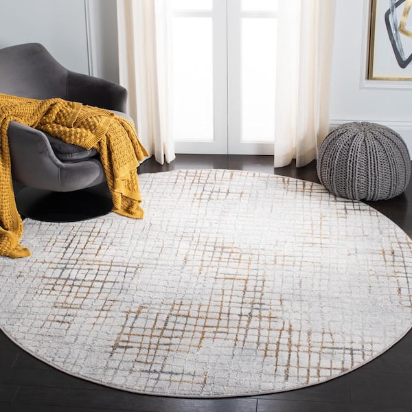 Orchard Gray/Gold 5 ft. x 5 ft. Striped Plaid Round Area Rug