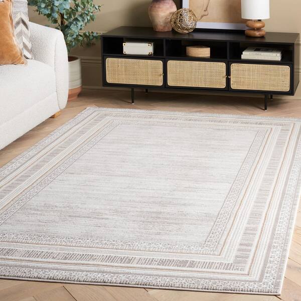 Parker 7 ft. x 7 ft. Taupe/Gray Gold Border Modern square Area Rug
