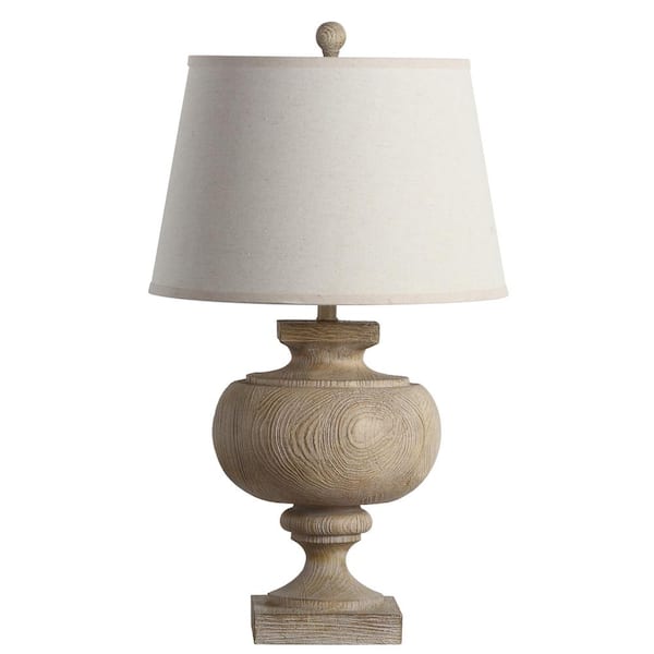 Prescott 31 in. Wood Finish Curved Table Lamp with Off-White Shade