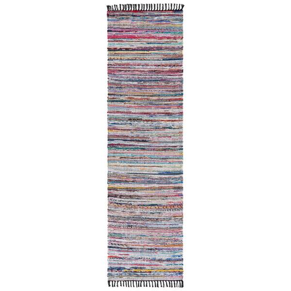 Rag 2 ft. x 8 ft. Black/Pink Abstract Striped Runner Rug