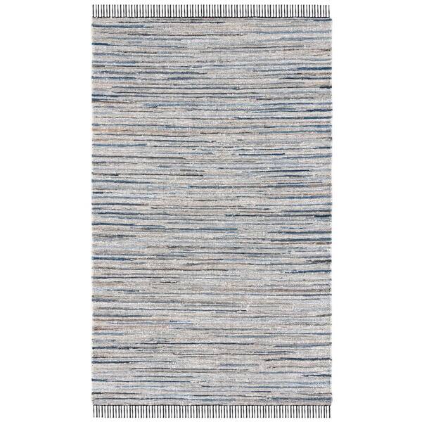 Rag 5 ft. x 8 ft. Light Blue/Black Abstract Striped Area Rug