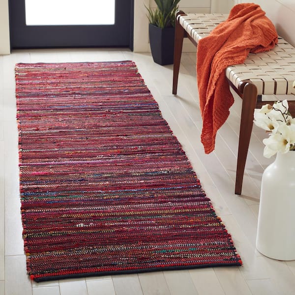 Rag Rug Fuchsia/Black 2 ft. x 8 ft. Striped Runner Rug