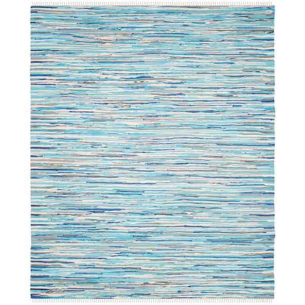Rag Rug Turquoise/Multi 8 ft. x 10 ft. Fleck Striped Area Rug