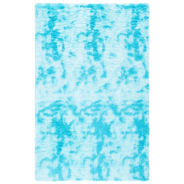 Rainbow Shag 6 ft. x 9 ft. Aqua Abstract Solid Area Rug