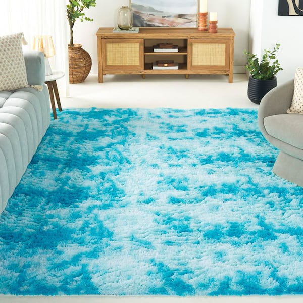 Rainbow Shag 8 ft. x 10 ft. Aqua Abstract Solid Area Rug