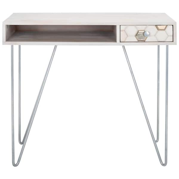 Raveena 34.6 in. Off-White/Silver Wood 1-Drawer Writing Desk