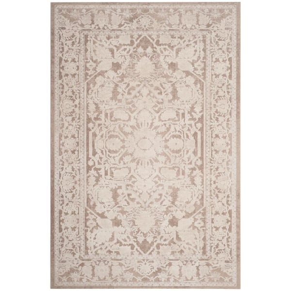 Reflection Beige/Cream 6 ft. x 8 ft. Border Floral Area Rug