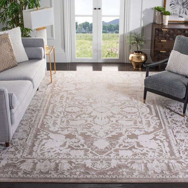Reflection Beige/Cream 7 ft. x 7 ft. Border Floral Square Area Rug