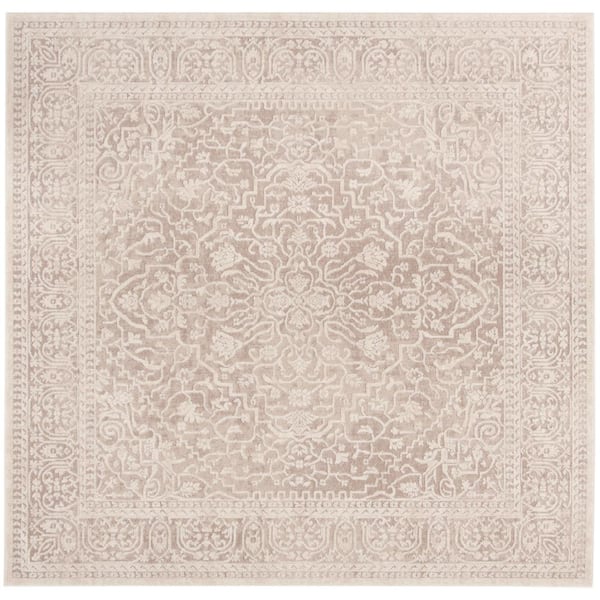 Reflection Beige/Cream 7 ft. x 7 ft. Distressed Floral Square Area Rug