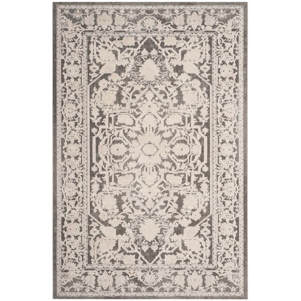 Reflection Dark Gray/Cream 5 ft. x 8 ft. Border Floral Area Rug