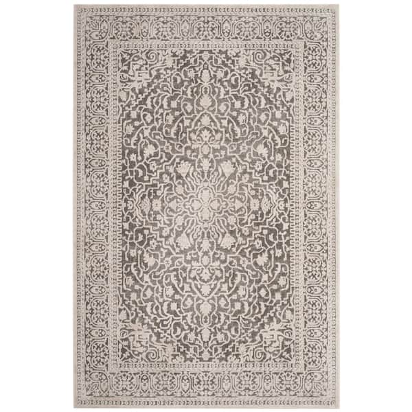Reflection Dark Gray/Cream 6 ft. x 9 ft. Distressed Floral Area Rug