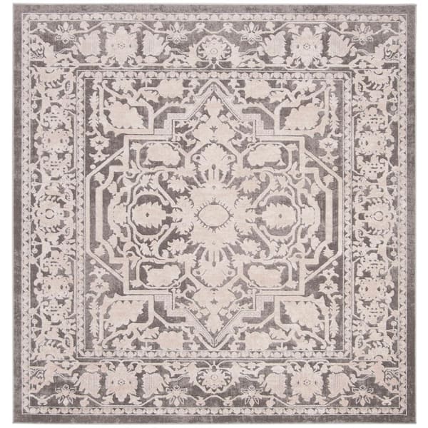 Reflection Dark Gray/Cream 7 ft. x 7 ft. Border Floral Square Area Rug