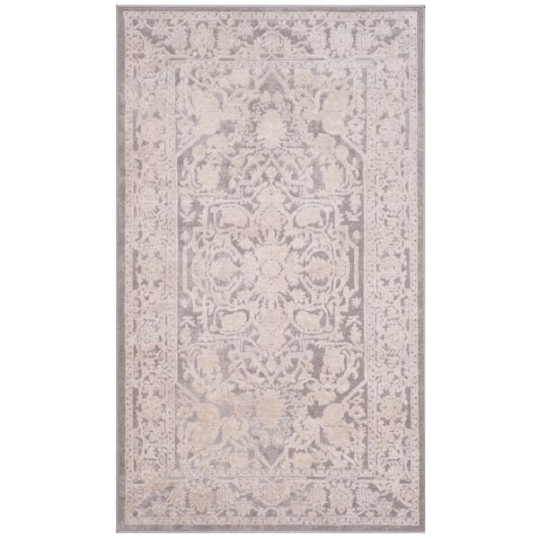 Reflection Light Gray/Cream 2 ft. x 3 ft. Border Floral Area Rug