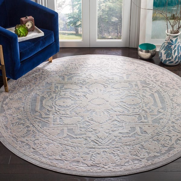 Reflection Light Gray/Cream 5 ft. x 5 ft. Border Floral Round Area Rug