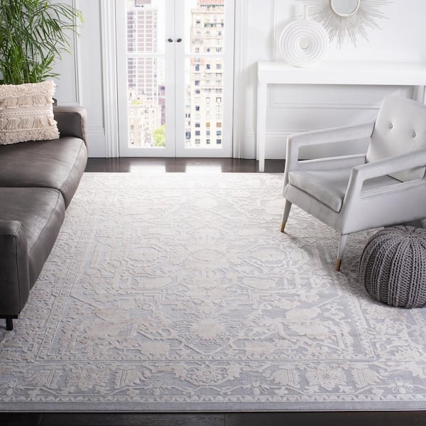 Reflection Light Gray/Cream 5 ft. x 5 ft. Border Floral Square Area Rug