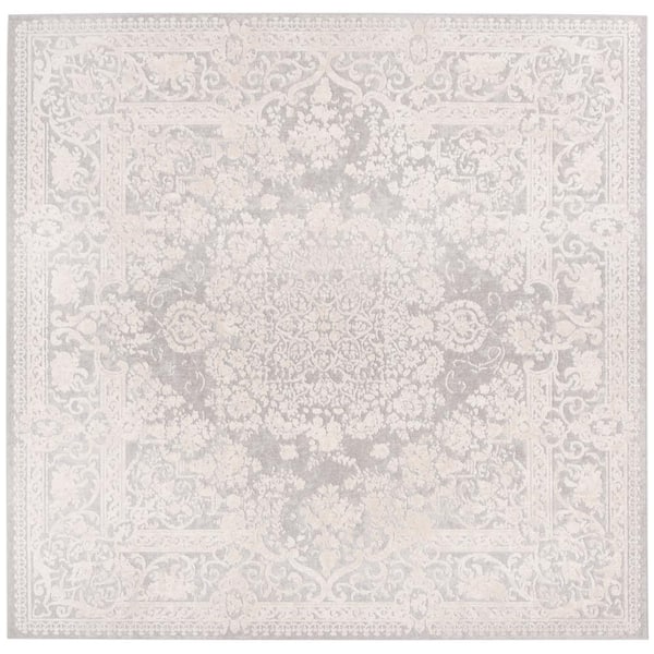 Reflection Light Gray/Cream Doormat 3 ft. x 3 ft. Floral Border Square Area Rug