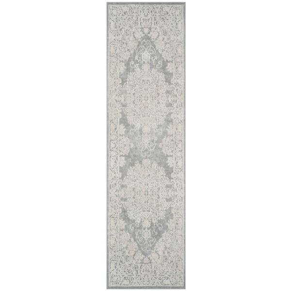 Reflection Light Grey/Cream 2 ft. x 6 ft. Floral Border Runner Rug