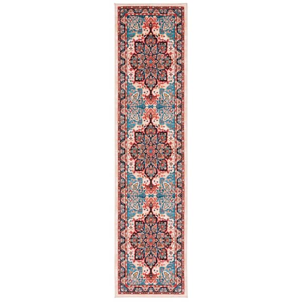 Riviera Blue/Beige 2 ft. x 9 ft. Machine Washable Medallion Border Runner Rug