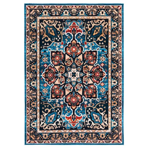 Riviera Blue/Black 5 ft. x 8 ft. Machine Washable Medallion Border Area Rug