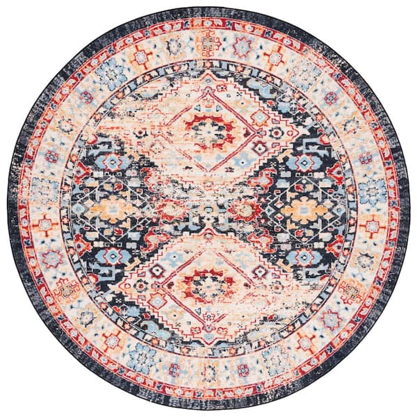 Riviera Charcoal/Gold 7 ft. x 7 ft. Machine Washable Medallion Border Round Area Rug