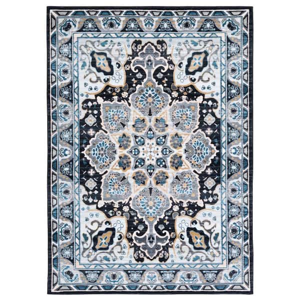 Riviera Gray/Light Blue 8 ft. x 10 ft. Machine Washable Medallion Border Area Rug