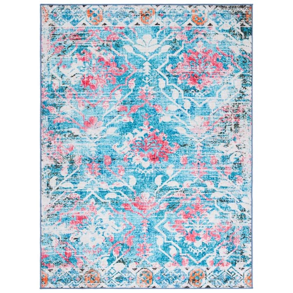 Riviera Light Blue/Pink 9 ft. x 12 ft. Machine Washable Floral Geometric Area Rug