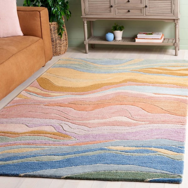 Rodeo Drive 2 ft. x 3 ft. Blue/Blush Abstract Wavy Area Rug