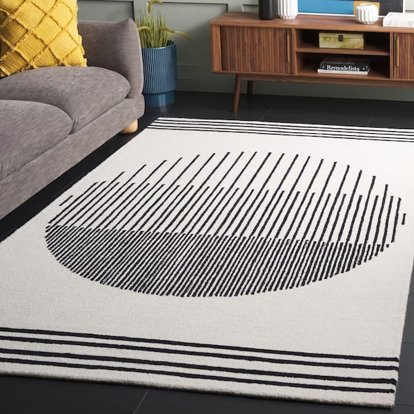 Rodeo Drive 3 ft. x 5 ft. Ivory/Black Striped Moon Area Rug