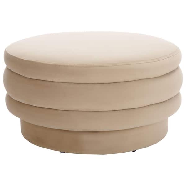 Rohan Tan Velvet Round Cocktail Medium Ottoman