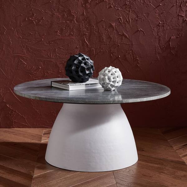 Roseclaire 36 in. Gold/Light Pink Round Stone End Table